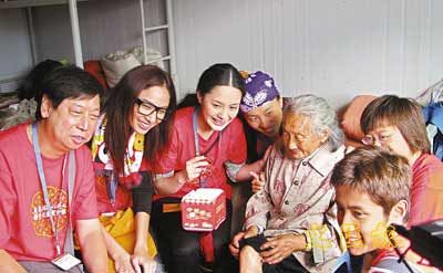 據(jù)香港文匯報(bào)報(bào)道,鐘欣桐、鄭希怡和李逸朗前日以英皇慈善基金成員身份,出席在四川擂鼓鎮(zhèn)舉行的“英皇擂鼓心連心關(guān)愛(ài)賀中秋”探訪活動(dòng)。身著紅色T恤、牛仔褲和靴子的阿嬌,看起來(lái)很精神。他們一行三人先到一位婆婆的家探訪,和婆婆傾偈之余又為她按摩,原來(lái)婆婆的十名親人在早前的大地震死去,只剩下一個(gè)孫女,他們離開(kāi)婆婆的家時(shí),對(duì)方又送他們花生,當(dāng)被拒絕時(shí),婆婆實(shí)時(shí)落淚,阿嬌和鄭希怡就借機(jī)引開(kāi)婆婆的注意力,讓李逸朗把花生放回婆婆家中。