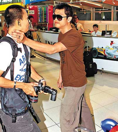 在曼谷機(jī)場(chǎng),李亞鵬先讓大女兒童童站在李嫣面前以防妹妹上鏡,然后便上前與男攝記對(duì)話,該名攝記說:“你要跟我動(dòng)手嗎?”李亞鵬聞言回答:“我就動(dòng)手,怎么啦?”攝記即說:“再動(dòng)看看!”其間李亞鵬伸手叉了男攝記脖子一下及拍他肩頭,此時(shí)一名女記者在旁邊大叫:“我在拍啦!”李亞鵬說:“你拍我就怕嗎?我怕嗎?”隨即猛力拍打男攝記的頸側(cè)近耳位置,女記者見狀即說:“報(bào)警!崩顏嗼i說:“報(bào)呀!”此時(shí)王菲經(jīng)理人陳家瑛見狀即上前打圓場(chǎng)。