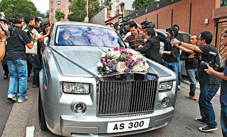 一對新人的勞斯萊斯約值550萬元,來頭不小。