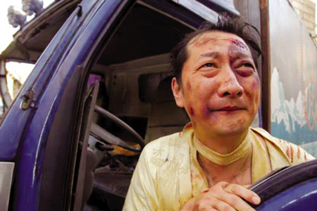 巴多:寧浩是特別嚴格的人,他絕對不會揍我。有場戲,我和王雙寶在車上整泰國毒販,我拿東西往他頭上打,打了幾遍,導演說巴多有點假,我要你真打。演員也是人,除非打別的地方去,打頭上真難下手。我就想了個辦法,把手墊在演員的后腦上,打就打在自己手背上。拍完后寧浩說打得好,我就捂著手,說導演你不知道,我的手都腫了……和“肥婆”演對手戲,我破壞她的摩托車被發現了,她就要碾我,幾百斤騎在我身上,我還得邊爬邊喊姐夫。我說導演能不能讓她腿架空?寧浩沒同意,后來真壓我身上,我才一百斤……還有一場戲,肥婆用魚打我,導演叫她要斜著打,斜著打那魚刺全扎我身上了,十幾根針,后來要一根根拔出來。大家就跟寧浩說,導演,你這樣是不是對我們太殘忍了。寧浩說,讓觀眾好看嘛。