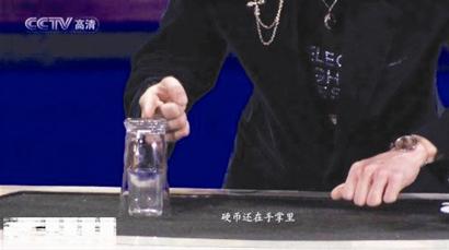 這個魔術,實際上董卿是個托,因為魔術不涉及職業道德的問題,只要給觀眾一個驚喜就可以了,董卿在兩個硬幣上簽名,當然字體和樣式要相近,私下里簽好的早已經給劉謙了。這時,硬幣掉在了桌面上,細心的觀眾可以明顯的看到硬幣的反光。