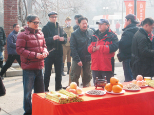 除了道具和布景以外,另一邊演員和造型師也忙得不可開交,記者在現場看到,造型師正一遍又一遍地檢查著各位演員的服飾和妝容,并且還要對每一雙鞋進行做舊處理,以達到最佳拍攝效果。當看到幾位群眾演員的軍裝領口,露出不符合時代背景的內衣后,就立刻要求他們脫下。記者看到,就連每一位群演的化妝也都細致入微,有的因為要調整膚色將粉底涂至脖子根部,有的被化妝師在臉上做出了好似疤痕的效果,更有甚者,因為發型不符合電影故事發生年代,竟被發型師當場剃成“板寸”。記者在現場還看到幾位候場的日本演員,敬業的他們在開拍前很久便開始對著鏡子反復練習。