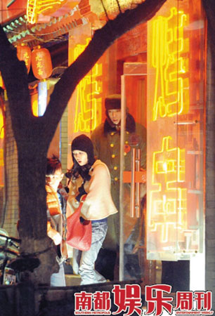 日前明道和陳喬恩一起出席了娛樂盛典活動。活動結(jié)束后明道陳喬恩在助理的陪同下乘車來到了簋街上一家經(jīng)營烤魚的餐廳吃飯,吃飯時圍坐在一起,氣氛特別熱烈, 這時有幾名粉絲尾隨而至,他們非要找兩人簽名合影,惹得明道很生氣,高聲喊道:“你們到底要干什么”。凌晨兩點左右飯局結(jié)束,明道出門馬上鉆進了別克商務(wù)汽車,過了好一會陳喬恩才出門,記者看到上車后她馬上就坐到了明道身邊。