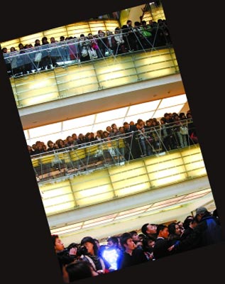 雖然阿嬌的普通話還是那么糟糕,就連她自己也承認(rèn)不太會說話,有些問題仍需經(jīng)紀(jì)人霍汶希代答,但無可否認(rèn)的是,單就昨日阿嬌的表現(xiàn),媒體一致認(rèn)為她的表達(dá)水平以及應(yīng)對媒體的公關(guān)技巧大幅提升。提到前一日粉絲接機的場面,阿嬌直言:“我沒有想到會有那么多人支持我,還有媒體記者們。有件事我感到很抱歉,因為我的出現(xiàn)引發(fā)場面混亂,有的歌迷跌倒了,有的記者掉了手機,我感到非常抱歉。”面對現(xiàn)場幾十人的橙色粉絲團,阿嬌一度哽咽道:“很開心再次來北京,我很想看奧運會,真遺憾錯過了。但我最想念的就是北京的歌迷,真的很感動。”眾歌迷聞聽此言,有組織地高喊:“阿嬌,我們永遠(yuǎn)支持你!”在粉絲的聲浪中,商場一層到頂層的樓梯和回廊上都擠滿了人群,場面煞是壯觀。