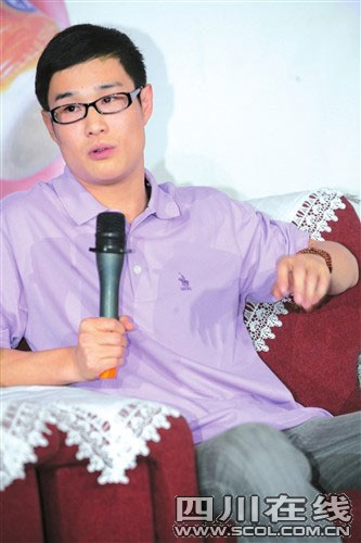 當(dāng)書卷氣十足的“小沈陽”上臺向觀眾鞠躬時,現(xiàn)場立即爆發(fā)出熱烈掌聲。女主持首先教“小沈陽”學(xué)說幾句成都話“好巴適哦!“巴適得板!”“巴適得慘”!“巴適得憨!”僅教了兩次,“小沈陽”就一口氣用正宗四川話說出來,逗得現(xiàn)場觀眾和記者哄堂大笑。緊接著,女主持又讓“小沈陽”跟她現(xiàn)場學(xué)唱四川民歌《康定情歌》。“小沈陽”竟以“二人轉(zhuǎn)”的形式翻唱,現(xiàn)場又是一陣笑聲。