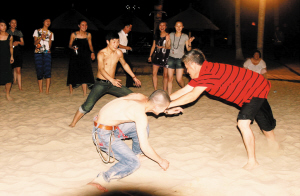 本山的好人緣在圈里是公認(rèn)的,張藝謀曾在記者面前評價趙本山是“絕對好人”。在徒弟面前,趙本山同樣也是他們的朋友和哥們兒。在海南巡演期間,記者感受到了本山和徒弟的親密無間,在飯桌上,徒弟們和本山推杯換盞就像是朋友。此時,本山也沒有平時的架子,他會和大家談笑風(fēng)生,整個演出團(tuán)隊打成一片。無論是誰,只要有演出、生活的問題,本山肯定耐心勸慰,讓他們拋開顧慮。興致來了,本山還會不顧年齡的差異和徒弟們在沙灘上摔上幾跤。男孩子可以和師父摔跤,但女孩子都希望與本山合影,面對著一望無際的大海,女演員和舞蹈隊的姑娘們提出了與本山合影的要求。本山對孩子們的要求不會拒絕,他甚至?xí)鲃庸律碜舆w就個子稍矮的女孩子。當(dāng)十多張照片拍完之后,記者明顯看到本山有了疲憊的跡象,于是提出“讓趙老師歇會兒再拍吧”,但本山堅持和每個演員照完。“難得有這樣的機(jī)會和大伙玩,都是自己人。”輕描淡寫的一句話,迅速拉近了自己和演員們的關(guān)系。