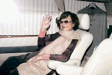 中新網(wǎng)10月19日電 “肥姐”沈殿霞前日出院返家休養(yǎng),愛熱鬧的她昨午出動(dòng)與好友聚會(huì),為免被傳媒追訪,她改乘陳淑芬的座駕,并拉上窗簾掩人耳目,直至晚上8時(shí)才回家,心情不錯(cuò)的她拉開窗簾讓記者拍照。化了妝的肥姐精神甚佳,還笑著向鏡頭揮手。