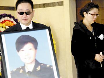 葉凡丈夫捧著妻子遺像。