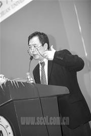 9點30分,閃光燈不停閃爍,張鐵林剛一出現,歡呼聲、掌聲立即爆響。張鐵林身穿一套深色西裝,扎著領帶,戴著一副金邊眼鏡,地道的學者氣派。一進會場就遭遇學生、媒體的圍堵。