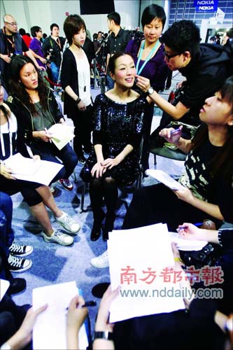 所有采訪完結后,鄭秀文正要離去,一個記者說想合影,鄭秀文立刻摟著她的肩膀合影,結果開了這個頭,現場幾乎所有記者都變成粉絲,一一要跟她合影。
