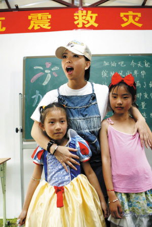前天(31日)下午,張惠妹帶上許多玩具以及文具,趕到成都青羊區地震災區群眾安置點,看望當地的孩子們。一個16歲小帥哥的精彩演唱讓阿妹驚得發呆,當場表示想收他當徒弟。