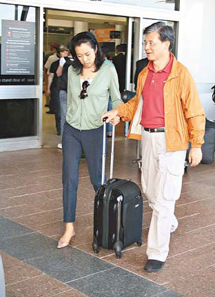 羅康瑞與朱玲玲在當(dāng)?shù)貢r(shí)間昨日早上七時(shí)許飛抵澳洲悉尼,朱玲玲雖然不施脂粉,但仍精神充沛、容光煥發(fā),加上身穿緊身Tee及針織外套,優(yōu)美身段表露無(wú)遺,難怪有靚足五十年的“最美麗港姐”之稱(chēng)。丈夫羅康瑞打扮同樣樸素,身穿外套、西褲及休閑恤衫,但亦難掩其新婚喜悅,全程笑容滿(mǎn)面。兩人的行李中更有高爾夫球用品,看來(lái)一向熱愛(ài)運(yùn)動(dòng)的兩人,蜜月期間計(jì)劃打高爾夫增進(jìn)感情。