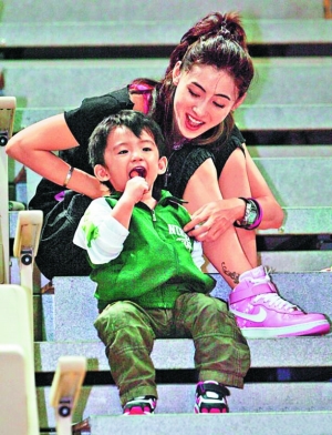 張柏芝此次臺北之行所到之處都受到追捧,前天在籃球館卻不及兒子Lucas搶鏡。Lucas不時在場內奔跑,不少球迷更專程和他合影。張柏芝一直跟在兒子后面照顧。球賽開始后兩母子在場邊觀戰,Lucas雙手拿著加油棒,還隨現場音樂搖擺,張柏芝笑言:“他獅子座,非常渴望大家都把眼光聚集到他身上。”
