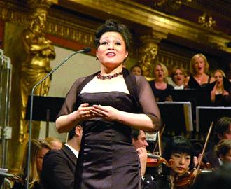 15日在維也納金色大廳舉行的首屆全球華人新春音樂會上,美籍華人女高音歌唱家黃英在演唱。當晚,100多名藝術家在這里用音樂這一世界性語言詮釋了復興中的中華民族和諧、發展與振興的時代強音。