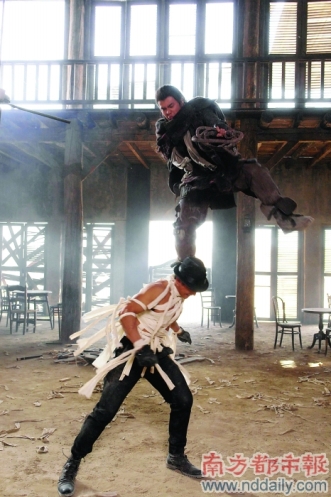 從劇照上看,周董的打扮神似他在《牛仔很忙》mv里的造型,只是多了一條巨型圍巾,還有一條皮鞭。這條皮鞭先前曝光的劇照里并沒出現過,顯然是進入武戲部分后周董拿出的“家伙”。圖中周杰倫和好友劉畊宏演的繃帶男正進行一場激烈的打斗,而繃帶男的武器竟是繃帶,他上身繃帶齊發(fā),仿佛白發(fā)魔女再世。另外,據悉,《刺陵》鎖定圣誕檔期,將于12月中旬在全球同步發(fā)行。