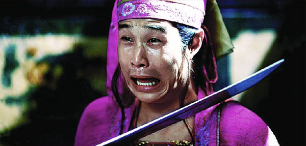 在影片中小沈陽出演的是一面館小伙計(jì),雖然身量“弱不禁風(fēng)”,但卻對武功特別癡迷,小沈陽說:“這是一挺陽光的小伙,平時好說好鬧,他爸爸是個殺豬的,挺有錢,他一門心思地練武功,自詡為‘武林中人’。”有趣的是小沈陽的造型,絕對稱得上是“嬌艷”,不是小紅襖里配個紅布兜,就是翠生生的綠長袍,再配上他那幾下花拳繡腿,不等說臺詞就能讓人樂噴了。看來張藝謀也充分發(fā)掘了小沈陽“男扮女裝”的表演特色,他在評點(diǎn)這個人物時自己更笑不攏嘴,“他造型簡直像新版‘西門慶’,服裝的效果讓他很‘水靈’,而他的表演最有特點(diǎn)的就是眼睛。”小沈陽自稱塑造了有史以來最經(jīng)典的“俠客”形象,他在片場常念叨的搞笑臺詞是:“我是令狐沖的弟弟——大蔥。”