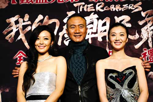 昨日下午,定位為“古裝暴力喜劇”的電影《我的唐朝兄弟》在北京舉行首映式。男主角之一的姜武因為要趕拍兄弟姜文的新片《為子彈飛》而缺席,另一位男主角胡軍趁機大享齊人之福,摟著兩位美女主演王曉和于小磊走過紅地毯。