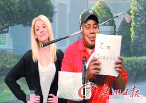 在一則小品中,布雷克裝扮成“虎嫂”艾琳,逼著搭檔基南·湯普森扮演的伍茲公開道歉,后者拿著印有“老婆太厲害了,我錯了,我害怕極了”之類字眼的紙板不停道歉,令人忍俊不禁。