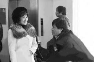 當天記者在片場意外地看到了一個人———阿峰。他帶著兩位朋友到片場來探班,一見到劉曉慶便上前噓寒問暖,還禮貌地與片場的工作人員握手問好。劉曉慶拍戲時,阿峰就站在一邊看她演戲,有時還會走到監視器前看鏡頭回放。
