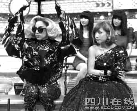 LadyGaGa在朝日電視臺(tái)的《MusicStation》中擔(dān)任表演嘉賓,她以一襲由日本設(shè)計(jì)師操刀的蝙蝠裝登場(chǎng),氣勢(shì)逼人。恰逢步姐上節(jié)目宣傳新專輯《搖滾馬戲團(tuán)》,GaGa被安排與步姐并排而坐,她不僅自爆睡覺(jué)時(shí)什么也不穿,又透露自己喜歡在各國(guó)尋找獨(dú)特的表演服裝:“這套衣服出自和GaGa姐相比,步姐成“小兒科”