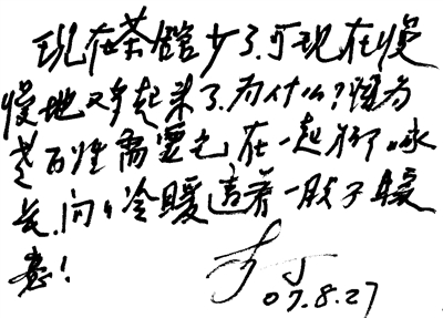 東方聞櫻說,李丁多次打電話詢問開播的消息,今年春節(jié)老爺子還抱怨:“我好不容易當了回男主角,這下可好,讓我等了3年還沒結果,真要等我‘走’了才播啊?我演了那么多戲,不在乎露不露臉兒,我遺憾的是老年人的電視劇為什么跟人見面這么難!”東方聞櫻提起這段往事非常心酸。在她眼里,李丁是個幽默感十足的智慧型老人,尤其在表演上有思想。“在劇組里,我總愛跟他談心。別人都認為李丁腦子糊涂是老年人了,可我知道他心態(tài)年輕是個老頑童。”東方聞櫻表示,近日她將趕往李丁的家中吊唁,帶去《老人的故事》送老爺子走完最后一程。記者 楊楊 王錚
