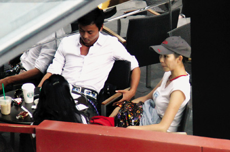 當天蔡少芬頭戴一頂棒球帽,白T恤配長裙的裝扮令其看上去非常有活力。或許是由于愛情的滋潤,雖然當天蔡少芬并沒有化妝,不過依然顯得非常漂亮。他們走進一家咖啡廳,落座后張晉侃侃而談,蔡少芬則一臉愛意地注視他。說到高興時,張晉抬起左手指指點點,蔡少芬馬上用手握住老公的胳膊,臉上滿是關心的表情,兩人看上去就像熱戀的情侶般默契十足,恩愛非常。
