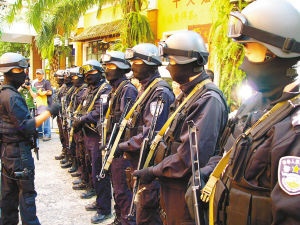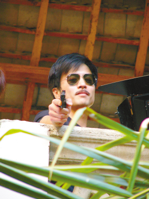 昨天下午,一隊12人的特警走進片場,他們蒙著臉,穿著戰術背心,戴著頭盔和護目鏡,這些身挎79式微型沖鋒槍、腿掛92式手槍的特警,是劇組專門從景洪市公安局借來的,除了沒裝子彈,所有裝備都是真家伙。