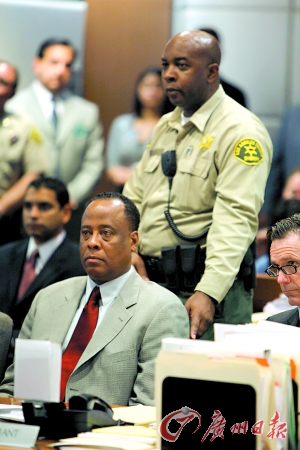 康拉德·默里在法庭上接受了簡短的訊問。身穿灰色西裝的康拉德·默里在法庭訊問過程中只是簡單地回答法官提出的問題。訊問結束后他被法警扣押,但在辦理了取保候審的手續(xù)后離去,他支付了7.5萬美元的保釋金。
