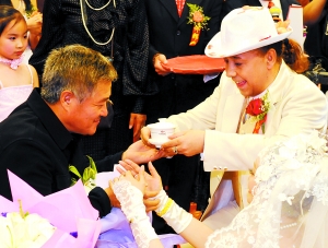 趙本山以“洋徒弟”博比·肯父親的身份致辭,并接受了新人斟上的“師傅茶”。昨日上午,趙本山在京出席了烏克蘭籍徒弟博比·肯和《劉老根》副導(dǎo)演張雯婷的婚禮。“鑼鼓喧天,鞭炮齊鳴,紅旗招展,人山人海。”用小品《小崔說事》中的經(jīng)典臺(tái)詞形容昨日的婚慶現(xiàn)場再合適不過。趙本山從東北帶來了腰鼓隊(duì)和嗩吶手為婚宴助興,并親自為舞獅隊(duì)中的龍獅點(diǎn)睛。面對30桌賓客,趙本山豪爽宣布:“今天沒帶什么禮物,所有吃喝我都買單了。”記者 郭延冰 勾伊娜 實(shí)習(xí)生吳丹 攝影報(bào)道