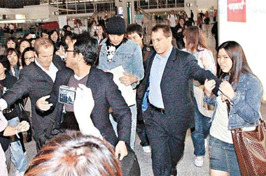 Rain機場脫衣秀健碩手臂 Fans開路秩序井然(圖)