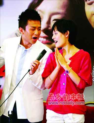 正在熱戀中的孫儷和鄧超前日齊齊亮相北京,為兩人攜手主演的電視劇《甜蜜蜜》在當地開播造勢。發布會上,兩人不時眉目傳情、親昵耳語,更搭肩合唱《甜蜜蜜》。孫儷還昵稱鄧超為“小綿羊”,現場大秀恩愛,毫不避嫌。