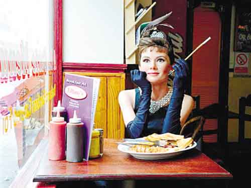 奧黛麗·赫本蠟像再現<蒂凡尼的早餐>中場景(圖)