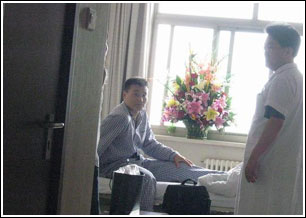 半個(gè)多小時(shí)后,一位醫(yī)生例行查房推開了任程偉的病房門,站在走廊里的記者看見任程偉身穿病號(hào)服斜躺在病床上,氣色有些灰暗,神情憔悴,雙腿好像不能動(dòng)彈。他回答醫(yī)生問題時(shí)聲音也很微弱,與他前不久登臺(tái)領(lǐng)獎(jiǎng)時(shí)神采飛揚(yáng)的樣子簡直判若兩人,而醫(yī)生則一直在勸慰任程偉。醫(yī)生走后,病房里傳來了一陣手機(jī)鈴聲,任程偉強(qiáng)打精神地通著話,臉上露出勉強(qiáng)的笑容,通話結(jié)束后,他就疲倦地倒在了床上,熒屏上的硬漢此時(shí)看上去特別虛弱。隨后記者撥打任程偉的電話,電話已經(jīng)關(guān)機(jī),而他經(jīng)紀(jì)人的電話也已轉(zhuǎn)到秘書臺(tái),截至發(fā)稿時(shí)任程偉的病情還沒有得到進(jìn)一步的證實(shí)。 卓偉