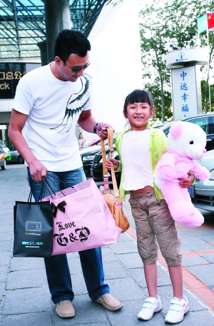 “爸爸年底就給你添個伴兒!(設計臺詞)”今年5月胡軍帶著女兒看望從地震災區送到北京醫治的孩子。玄反影 攝