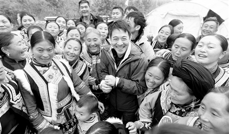 當天,李連杰還走訪了茂縣境內的羌繡技藝培訓基地,之后,他又繼續趕往綜渠鄉的羌繡幫扶點,探望那里的繡女朱召應。朱召應和丈夫在汶川大地震中雙雙受傷,她的脊柱受損不能站立,她的兒女又有殘疾,生活非常艱難,后來朱召應加入羌族婦女就業幫扶計劃,每天埋頭做羌繡,生活有了很大改善。李連杰在她居住的帳篷里,不斷鼓勵這個坐在輪椅上的堅強女性,“你一定要繼續加油,總會慢慢好起來的。”離開茂縣之前,有人把剛剛收到的一條新聞短信拿給李連杰看,原來這是本報“華西手機報”發出的一條新聞,正是轉載昨日本報的報道《慈善大俠李連杰來到咱羌寨》,李連杰看了后很是高興,不過他說:“做慈善其實并不是我一個人的事,大家一起努力才能成功,有了我們是一家人的信念,一定能戰勝困難。”