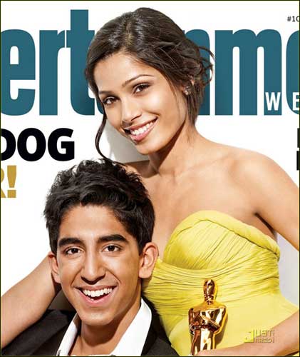 奧斯卡結束了,但是奧斯卡帶來風潮和效應并沒有結束,而橫掃奧斯卡的《貧民窟的百萬富翁》也捧紅了男女主角,他們等上了《Entertainment》雜志的封面,封面上兩個人眉開眼笑,手拿小金人拍照。