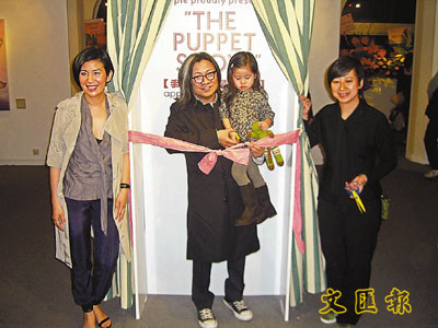 中新網3月20日電 陳可辛與吳君如偕女兒陳是知前晚(18日)出席好友張倩華“我們都是玩偶”個人畫展,首次一家三口出席活動,三歲愛女一直由父親陳可辛抱著,君如在旁連番叫女兒展露笑容及跟傳媒打招呼,“小君如”也表現淡定,無懼鎂光燈不停地閃她,好奇地望著鏡頭,她還跟父親一起負責當上剪彩嘉賓,毫不怯場。