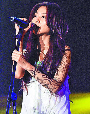 中新網1月12日電 創作歌手陳綺貞前晚在臺北小巨蛋的首場演唱會吸引1萬名粉絲,昨晚第2場依舊座無虛席,她一共換穿5套衣服,除了報童裝、軍裝,還以安全帽、皮衣打扮,騎上價值40萬元(新臺幣,下同)的復古機車,演唱新歌《魚》時又換上有閃閃鱗片的洋裝,化身美人魚。