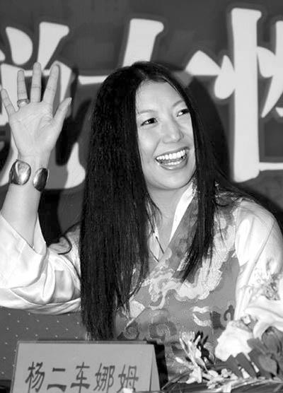 去年在娛樂圈鬧騰了大半年、被評為2007年娛樂紅人的楊二車娜姆在新年伊始首度高調出場,帶著她的新書與北京的媒體見面。每個女人都是一朵花,每個人都有一朵心中的花。“戴花”成了楊二的一個符號。一身傳統的藏式長袍,一頭烏黑的長發披肩,但是卻少了發間的那朵標志性的大紅花,楊二的這一全新的裝扮讓在座記者都議論紛紛。