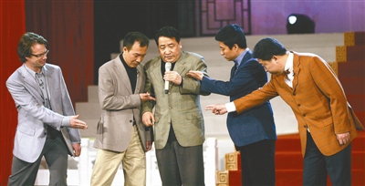 昨天的語言類節目終審地點從五棵松的影視之家移師到央視轉播廳,現場觀眾人數比原來增加不少,可以檢驗每個節目的“笑果”。經過數小時的挨個過堂,據相關人士透露,11個節目基本上悉數過關。之前,與姜昆有關的三個作品《大拜年》、對口相聲《我暈》、群口相聲《新五官爭功》昨天有兩個順利過關,對于62個相聲演員合作的“大合唱”《大拜年》沒能通過審查。