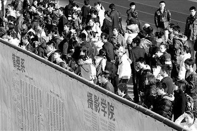 今年辦理復(fù)試手續(xù)分成三天之內(nèi)辦完,考生只要在自己復(fù)試的前一天來表演學(xué)院辦理復(fù)試手續(xù)即可。這種方式不僅分流了人群,也為那些初試完就回家,委托家人和朋友幫忙來看榜的考生提供了極大的方便。