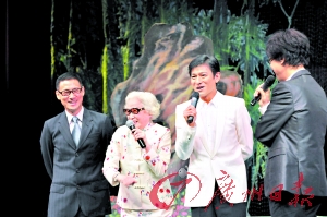 紅線女一出場,全場觀眾即報以熱烈的掌聲。嘉賓司儀、香港無線總經理陳志云在問及紅線女為什么要拍此動畫片時?紅線女老師說:“我現在的年紀,形象不適合出現在舞臺,我想我的聲音還可以繼續為大眾服務。于是我想到卡通片。而且這部劇很不錯,有故事內容,提倡和諧,和諧才會好!奔t線女神采奕奕,妙語連珠,觀眾反映看不出她已80多歲。當被問到她是如何保持聲線的?“女姐”坦言是媽媽給的。“女姐 ”還現場演唱了新作粵曲《水鄉橋韻》,香港觀眾大贊她寶刀未老。