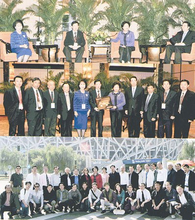 中新網10月15日電 據菲律賓《商報》報道,十三日上午,在國務院僑辦的安排下,菲華各界聯合會訪華團一行游覽了雄偉壯觀的居庸關長城以及鳥巢,水立方等零八奧運體育場館,當晚。國務院僑務辦公室主任李海峰,副主任許又聲在北京香格里拉大酒店設宴熱烈歡迎該會訪華團一行。宴會前,李海峰,許又聲等國僑辦領導親切會見了全體訪華團團員。
