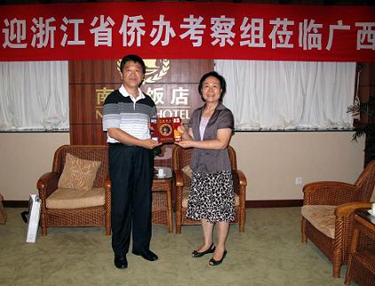 廣西自治區(qū)僑辦秘書行政處、僑政處、經(jīng)科處、國外處、安置處和機關(guān)后勤中心等處室主要負(fù)責(zé)人座談會上就座。座談會后,雙方還互相交換了紀(jì)念品。