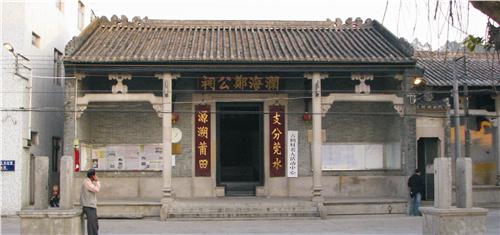 村頭石閘門始建于清嘉慶年間,同治十二年(1873)重修,俗稱“青龍口”,緊接角頭街,門額鑲有“古道循行”和“鶴聲高迥”兩塊石匾。村尾石閘門門額鑲有“步接青云”和“祥迎紫氣”石匾,主樓上的圓雕灰塑頗為精致。古渡頭遺址歷史上經歷了多次遷址,現位于中街與上街之間,已成為石板街的一部分。位于村尾的“樂善好施”牌坊,是為表彰古鶴村鄭有庸遵母命賑災有功而建,始建于清光緒八年(1882),石雕銘文有時任直隸總督李鴻章的手跡,頗為珍貴。