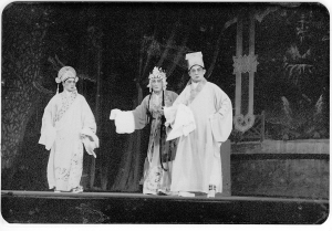 這是一張當年的廣東瓊劇院(現海南省瓊劇院)組團出訪新加坡時的演出劇照。作為新中國成立后瓊劇第一次走出國門的大事件,不但引起當時內地戲劇界的高度關注,而且同樣也在新加坡眾多海南鄉親中引起了極大轟動。