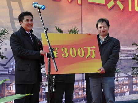 中新網12月31日電 據青田縣發展和改革局消息,12月28日,浙江省青田縣高市旅游接待中心舉行開工典禮。中國僑聯副主席、寧夏回族自治區僑聯主席、浙江省僑聯青年總會榮譽會長朱奕龍為開工典禮剪彩,并為高市村新農村建設個人捐贈300萬元,青田縣領導王通林、楊雷、葉選君、陳海民、呂大德、舒志勇及縣相關職能部門代表參加了儀式。