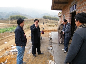 中新網1月13日電 據賀州市僑聯消息,1月8日,廣西賀州市僑聯主席、統戰部副部長王西祺,在平桂管理區宣統部副部長謝毅等區、鎮領導的陪同下,冒著毛毛細雨,踏著泥濘的鄉間小路,到平桂管理區望高鎮立頭村和公會鎮新農村檢查海外援建項目——海聯衛生室的建設進度。