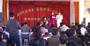 當(dāng)日下午,福建省僑聯(lián)文化藝術(shù)團(tuán)在農(nóng)場(chǎng)中學(xué)禮堂舉行了2010年迎新春“親情中華”慰?jī)S演出活動(dòng),這也是福建省僑聯(lián)文化藝術(shù)團(tuán)成立不久以來首次下鄉(xiāng)正式演出,意義不同尋常。藝術(shù)團(tuán)準(zhǔn)備的13個(gè)節(jié)目個(gè)個(gè)精彩,舞蹈《大唐華章》展現(xiàn)了盛唐中國(guó)的瑰麗風(fēng)采,葫蘆絲獨(dú)奏《月光下的鳳尾竹》把人們帶入了月光盈盈、竹影婆娑的美好境界,情景舞蹈《洗衣歌》使人領(lǐng)略了藏族風(fēng)情和軍民魚水情誼,等等。演出得到了僑場(chǎng)歸僑僑眷的熱烈歡迎,領(lǐng)導(dǎo)群眾歡聚一堂共賞精彩節(jié)目,氣氛熱烈祥和。(唐宜)