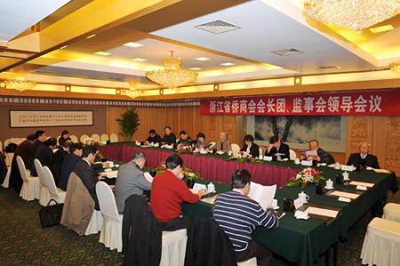 中新網1月29日電 據浙江僑聯網消息,2010年1月24日晚,浙江省僑商會在浙江世貿君瀾大飯店舉行會長團、監事會領導會議。